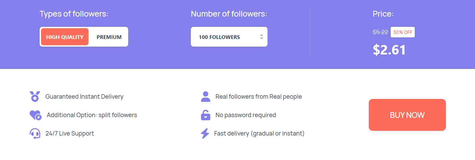 - Real followers from real accounts